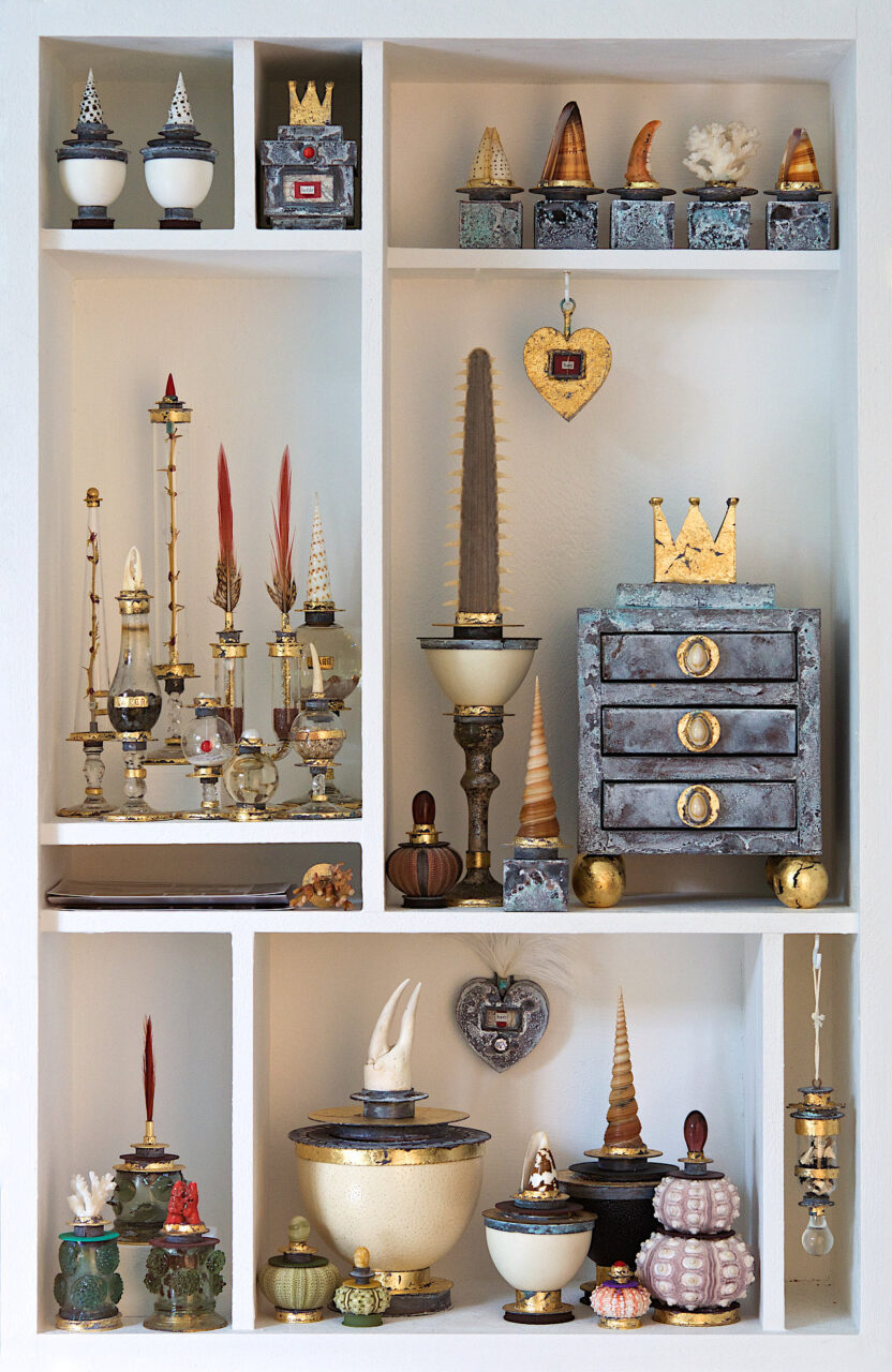 In zijn huidige werk laat Hans van der Weijden zich inspireren door de rariteitenkabinetten van middeleeuwse vorsten en door relieken uit de schatkamers van oude kerken. In antieke reliekhouders worden de overblijfselen van heiligen bewaard en aanbeden. Zowel de reliekhouders als de objecten van de kunstenaar tonen én verbergen hun geheim. Door het verzamelen, opbergen en ordenen in een doosje of achter glas ontstaat een eigen wereld, maar ook afstand. De scheidingslijn tussen inhoud en verpakking verdwijnt. Museum Valkenburg nodigt u dan ook graag uit om op bezoek te komen in de ‘wunderkammer’ van Hans van der Heijden!