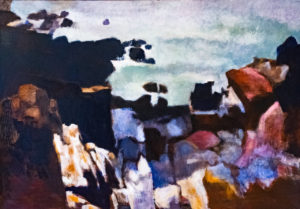 On this canvas On the coast (140 x 200 cm) you see a rugged coast of presumably Brittany. But it can also be Cornwall. Peter did not put a title, place or date everywhere. And unfortunately we can not ask him anymore. But is it bad that we do not know where this was exactly? Does that make the work different? It is an interpretation of a beautiful place by the sea. He has been there, sat on a rock, looked and painted or painted with water and paint, as he often did. Perhaps he even photographed the place and, only later in his studio, made this beautiful canvas. From a memory, a feeling and possible sketches.