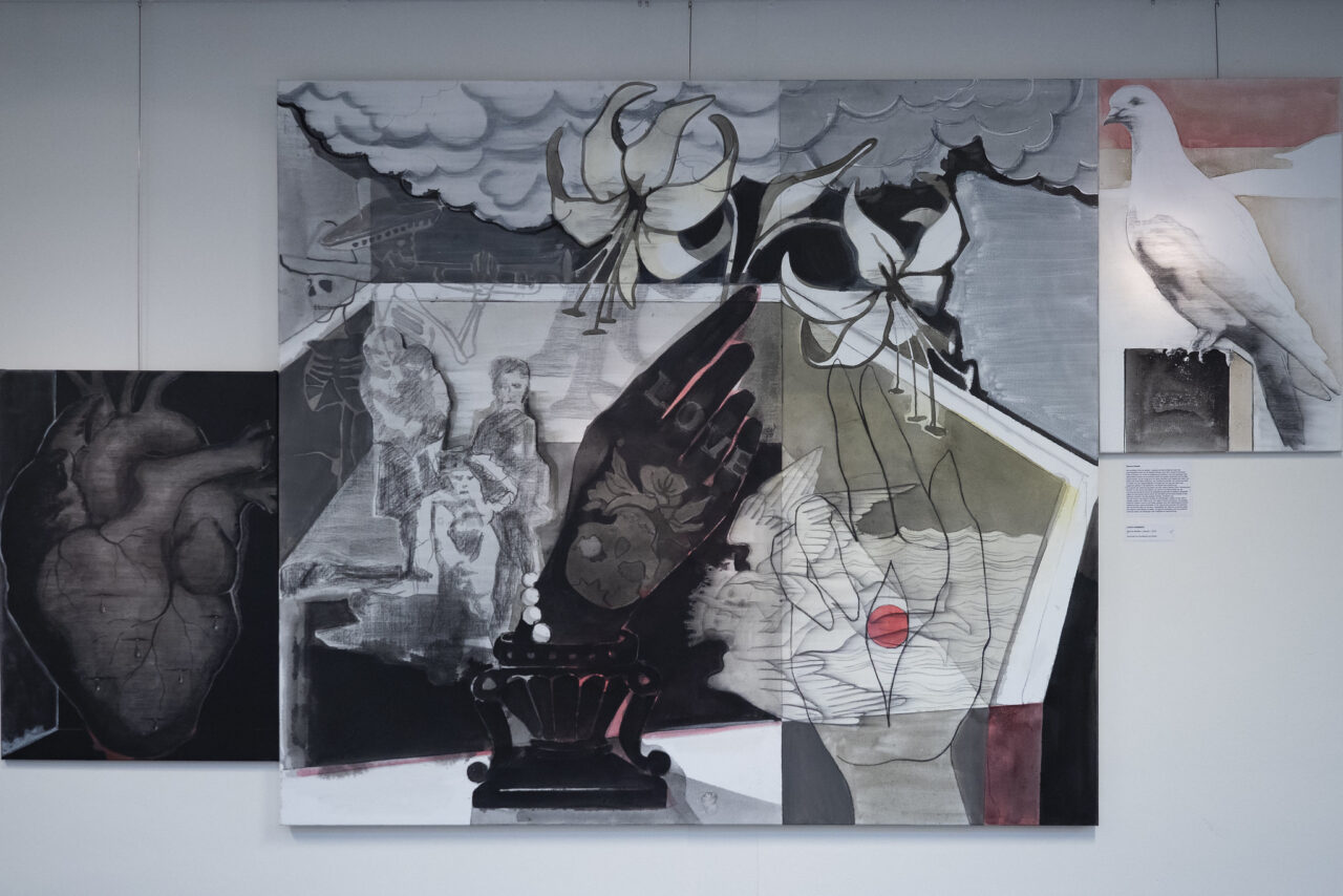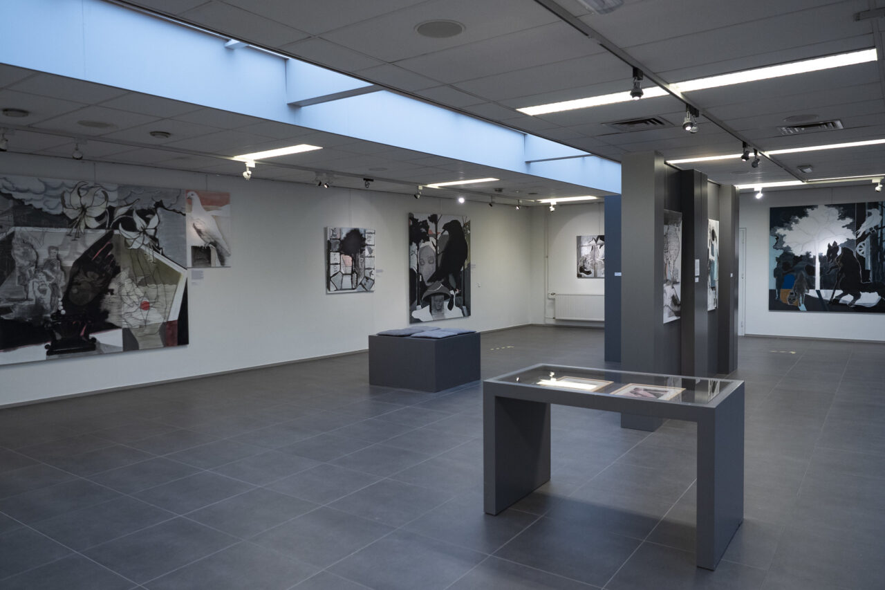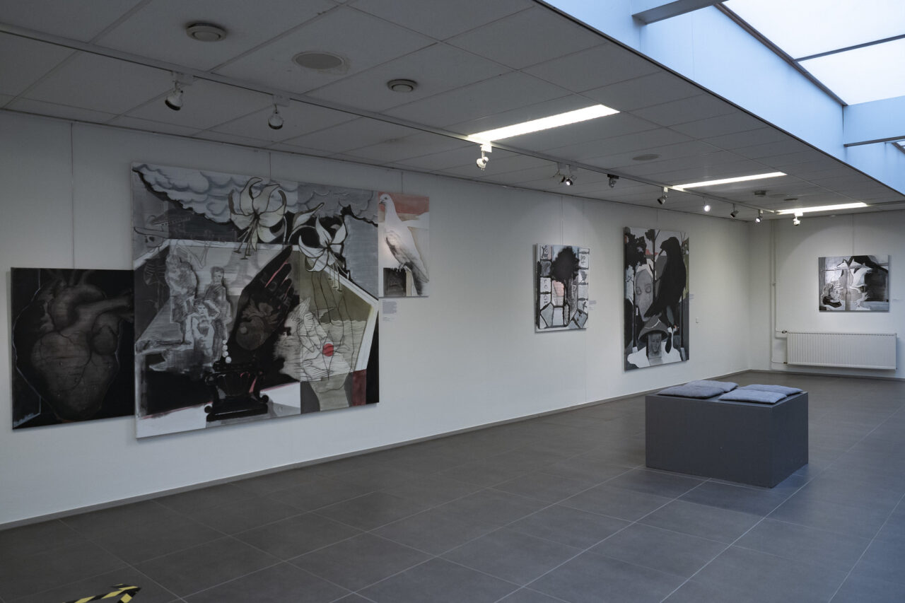 Kunstenares Judith Krebbekx vertoonde in Museum Valkenburg een imposant deel van haar kunst in de tentoonstelling ‘Gimme Shelter’. Helaas hingen de indrukwekkende werken maar liefst 6 maanden zielig en alleen in ons lege museum vanwege landelijke COVID-19 sluiting. Slechts enkele weken na heropening werden deze zelfde kunstwerken verrast door een meter Geul-water onder zich: de Geul was overstroomd en hierdoor ook Valkenburg-Centrum en ons mooie museum!