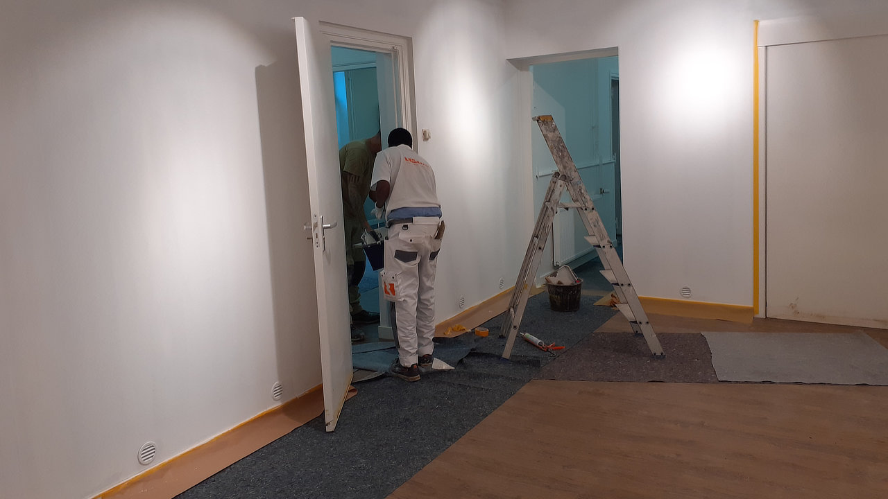 Inmiddels kunnen we weer trots zijn op ons museum! Er is hard doorgewerkt op de begane grond en de zalen zien er weer piekfijn uit. De balie, de Jacques Vonckzaal en de keuken hebben nieuwe vloeren gekregen en de keuken is voorzien van een nieuw keukenblok. Om het nog aanwezige vocht in de mergelstenen fundering en muren ook nadien te kunnen te luchten, zijn er in de zalen voorzetwanden geplaatst met ventilatieroosters. In de ontvangsthal is er een grijs/witte lambrisering aangebracht zodat het vocht hierachter ook nog weg kan. Tevens worden er nog hydro-apparaten geplaatst in het museum. Het einde van het schilderwerk komt ook in zicht, alleen nog wat afwerking.